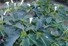 毛曼陀罗是茄科曼陀罗属一年生直立草本或半灌木状植物。株高1-2米,全体密被细腺毛和短柔毛。茎下部灰白色,分枝灰绿色或微带紫色;叶片广卵形,基部不对称近圆形,…全部>>