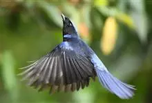 小仙鹟:体长11-13厘米,是一种深色鹟。雄鸟深蓝,脸侧及喉黑,臀白,前额、颈侧及腰为闪辉蓝色。与大仙鹟的区别在体型较小,胸蓝色,臀白色。雌鸟褐色,翼及尾棕色,颈侧具闪辉蓝色斑块,喉皮黄,项纹浅皮黄。…全部>>