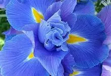 花菖蒲:是玉蝉花的变种。多年生宿根挺水型水生花卉。根状茎短而粗,须根多并有纤维状枯叶梢,叶基生,线形,叶中脉凸起,两侧脉较平整。花葶直立并伴有退化叶1-3枚。花大直径可达15厘米。外轮三片花瓣呈椭圆…全部>>
