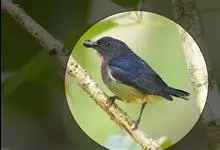 小仙鹟:体长11-13厘米,是一种深色鹟。雄鸟深蓝,脸侧及喉黑,臀白,前额、颈侧及腰为闪辉蓝色。与大仙鹟的区别在体型较小,胸蓝色,臀白色。雌鸟褐色,翼及尾棕色,颈侧具闪辉蓝色斑块,喉皮黄,项纹浅皮黄。…全部>>