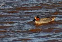 绿翅鸭是小型鸭类,体长37厘米,体重约0.5千克。嘴脚均为黑色。雄鸟头至颈部深栗色,头顶两侧从眼开始有一条宽阔的绿色带斑一直延伸至颈侧,尾下覆羽黑色,两侧各有一黄色三角形斑,在水中游泳时,极为醒目。…全部>>