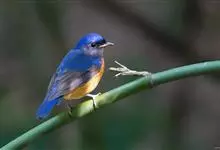 小仙鹟:体长11-13厘米,是一种深色鹟。雄鸟深蓝,脸侧及喉黑,臀白,前额、颈侧及腰为闪辉蓝色。与大仙鹟的区别在体型较小,胸蓝色,臀白色。雌鸟褐色,翼及尾棕色,颈侧具闪辉蓝色斑块,喉皮黄,项纹浅皮黄。…全部>>