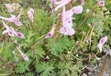 紫堇,罂粟科紫堇属一年生草本植物,高50厘米。主根细长;茎分枝,花枝常与叶对生;基生叶具长柄,叶倒卵圆形;总状花序花冠粉红或紫红色,外花瓣较宽;蒴果线形下垂;种子密被环状小凹点;花期3-4月,…全部>>