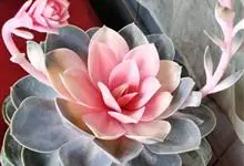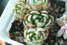 紫珍珠是景天科石莲花属的多年生肉质草本植物。植株中小型;叶片肉质,匙形,呈莲座状紧密排列;叶片粉紫色,叶缘呈粉白色,光照充足时颜色亮丽,不足时叶色会呈现深绿色或灰绿色,叶面光滑,被轻微白粉,…全部>>