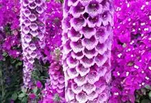 毛地黄是车前科、毛地黄属一年生或多年生草本植物。株高0.5—1米,茎直立,少分枝,全株被灰白色短柔毛和腺毛叶基生,呈莲座状,卵圆形或卵状披针形。顶生总状花序,花冠钟状,紫红色,内面有浅白斑点。菊果卵形。…全部>>