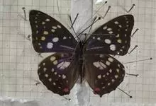 大紫蛱蝶为大型蝶种,翅展约86~110mm。翅紫黑色,有白色斑点点缀其中,雄蝶的翅具强烈紫色虹彩,其余部分暗褐色,后翅臀角具粉色斑。雌蝶体型较大,但是没有蓝紫金属光泽。原产于东亚的蝶类。…全部>>