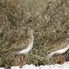 红脚鹬:体长28厘米,上体褐灰,下体白色,胸具褐色纵纹。飞行时腰部白色明显,次级飞羽具明显白色外缘。尾上具黑白色细斑。虹膜黑褐色,嘴长直而尖,基部橙红色,尖端黑褐色。脚较细长,亮橙红色,…全部>>