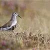 红脚鹬:体长28厘米,上体褐灰,下体白色,胸具褐色纵纹。飞行时腰部白色明显,次级飞羽具明显白色外缘。尾上具黑白色细斑。虹膜黑褐色,嘴长直而尖,基部橙红色,尖端黑褐色。脚较细长,亮橙红色,…全部>>