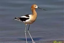 反嘴鹬是反嘴鹬科反嘴鹬属鸟类,又名反嘴鸻。体长38—45厘米。眼先、前额、头顶、枕和颈上部绒黑色或黑褐色,形成一个经眼下到后枕,然后弯下后颈的黑色帽状斑。其余颈部、背、腰、尾上覆羽和整个下体白色。…全部>>