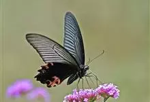 绿带翠凤蝶,又名深山凤蝶,为凤蝶科凤蝶属下的一种。分布于韩国、日本、中国台湾、中国大陆等地。翅黑色,满布金绿色鳞片。前翅亚缘具黄绿色横带纹。后翅外缘有6个略呈新月形的红斑,…全部>>