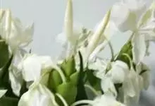 姜花又名野姜花。是姜科姜花属的多年生草本植物,茎高1-2米;叶片长圆状披针形或披针形,叶面光滑,叶背被短柔毛;穗状花序顶生,椭圆形,花芬芳,白色;蒴果卵状三棱形,微黄绿色;种子鲜红色,具橘红色的假种皮。…全部>>