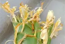 姜花又名野姜花。是姜科姜花属的多年生草本植物,茎高1-2米;叶片长圆状披针形或披针形,叶面光滑,叶背被短柔毛;穗状花序顶生,椭圆形,花芬芳,白色;蒴果卵状三棱形,微黄绿色;种子鲜红色,具橘红色的假种皮。…全部>>