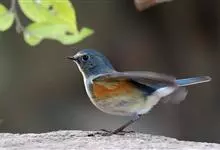 红胁蓝尾鸲俗名:蓝点冈子、蓝尾巴根子、蓝尾杰、蓝尾欧鸲。体型略小而喉白的鸲。特征为橘黄色两胁与白色腹部及臀成对比。雄鸟上体蓝色,眉纹白;亚成鸟及雌鸟褐色,尾蓝。…全部>>