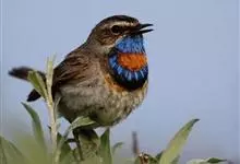 蓝点颏亦称“蓝喉歌鸲”,通称蓝靛颏儿。身体大小和麻雀相似,体长12-13厘米,体重17-18克。头部、上体主要为土褐色。眉纹白色。尾羽黑褐色,基部栗红色。颏部、喉部辉蓝色,下面有黑色横纹。下体白色。…全部>>