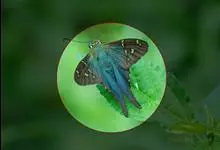 黑框蓝闪蝶(黑框蓝摩尔福蝶)鳞翅目 > 蛱蝶科 > 摩尔福蝶属 > 黑框蓝闪蝶