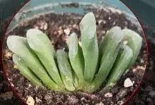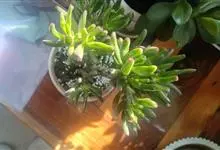 筒叶花月,是景天科青锁龙属的多年生草本植物。植株多分株,灌木状,茎较粗壮,圆柱形,表皮灰褐色;叶片肉质,互生,呈圆筒状,簇生于茎或分枝顶端,叶端呈斜截形,截面为椭圆形;花呈星状,淡白色;花期秋季。…全部>>