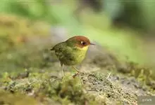 栗头地莺:小型鸣禽。体长约10厘米。体型纤细,是中国体型最小的鸟类之一;喙细尖,上喙先端多有缺刻;翅短圆;尾短至中等;腿短而细。羽色以灰、褐及橄榄绿为主,雌雄羽色相似。栖息于灌木或稀疏林内,…全部>>