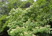 灯台树是山茱萸科山茱萸属的落叶乔木,高可达15米。茎光滑;枝紫红色,微被毛,皮孔及叶痕显著;叶纸质,宽椭圆形或卵状椭圆形;顶生伞房状聚状花序,花为白色,花萼具三角状裂片,花瓣有4个,花盘垫状,…全部>>