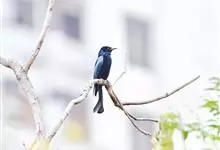发冠卷尾是中型鸟类,体长28-35厘米。通体绒黑色缀蓝绿色金属光泽,额部具发丝状羽冠,外侧尾羽末端向上卷曲。栖息于海拔1500米以下的低山丘陵和山脚沟谷地带,多在常绿阔叶林、次生林或人工松林中活动。…全部>>