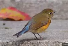 红胁蓝尾鸲俗名:蓝点冈子、蓝尾巴根子、蓝尾杰、蓝尾欧鸲。体型略小而喉白的鸲。特征为橘黄色两胁与白色腹部及臀成对比。雄鸟上体蓝色,眉纹白;亚成鸟及雌鸟褐色,尾蓝。…全部>>