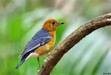 橙头地鸫是鸫科、地鸫属中型鸟类,体长18-22厘米。整个头、颈和下体橙栗色,其余上体包括两翅和尾蓝灰色或橄榄灰色,翅上多具白色翅斑。虹膜褐色或棕褐色,嘴黑褐色或黑色,脚橙黄色或肉黄色。特征极明显。…全部>>