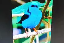 橙腹叶鹎体形大小和金额叶鹎相似,体长16~20厘米。额至后颈黄绿色,其余上体绿色,小覆羽亮钴蓝色,形成明显的肩斑。颏、喉、上胸黑色具钴蓝色髭纹,其余下体橙色。飞羽和尾羽雄鸟黑色、雌鸟绿色。…全部>>