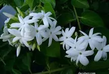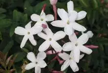 素馨花,木犀科素馨属多年生的攀援灌木植物。攀援灌木,小枝圆柱形,具棱或沟;叶对生,叶轴常具窄翼,小叶片卵形或长卵形;聚伞花序顶生或腋生,花序梗长,苞片线形,花萼无毛,裂片锥状线形,花冠白色,…全部>>
