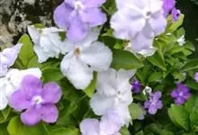 鸳鸯茉莉,茄科鸳鸯茉莉属常绿灌木植物,高1米。茎皮深褐色;分枝力强;单叶互生纸质;花簇生,聚伞花序,花冠五裂花瓣锯齿,含苞时蘑菇状深紫色,花香浓郁;花期4-10月。鸳鸯茉莉花朵芳香,…全部>>