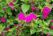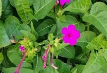 即紫茉莉,英文名:Four-o'clock,Marvel of Peru,为紫茉莉科、紫茉莉属多年生草本植物,一年生栽培。株高50~80cm。根粗壮,茎多分枝而散生。叶对生,卵形或心脏形。花数朵簇生…全部>>