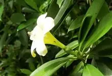灰莉,龙胆科灰莉属灌木或小乔木植物,树皮灰色。小枝粗厚,圆柱形;全株无毛;叶片稍肉质,干后变纸质或近革质,叶面深绿色,干后绿黄色;花单生或组成顶生二歧聚伞花序;花冠漏斗状,质薄,稍带肉质,白色,…全部>>