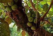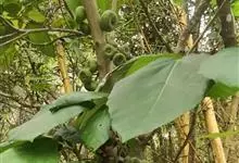 大果榕是桑科榕属的小乔木,株高可达10米;幼枝被柔毛;叶互生,宽卵状心形或近圆形;雄花无梗、匙形、花丝长,雌花生于雌株榕果内,子房白色;榕果簇生于树干基部或老茎短枝上、扁球形或陀螺形,…全部>>