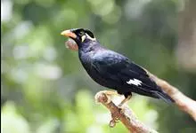 金冠树八哥为椋鸟科树八哥属的鸟类。体长约23厘米,闪辉黑色。特征为具翼斑及颏黄色,脸颊裸露皮肤粉黄色。分布于印度、缅甸、泰国以及中国大陆的云南、广东等地。…全部>>