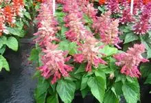 一串红,又称爆仗红、象牙红,为唇形科鼠尾草属植物。花序修长,色红鲜艳,花期又长,适应性强,为中国城市和园林中最普遍栽培的草本花卉。原产巴西、南美洲。喜温暖和阳光充足环境。不耐寒,耐半阴,忌霜雪和高温,…全部>>