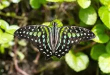 碎斑青凤蝶是凤蝶科、青凤蝶属昆虫。体背面黑色,具绿毛,腹面淡白色。翅黑褐色,斑纹淡绿色或浅黄色;前翅中室有5个斑纹排成1列;后翅基半部有5-6个大小不同的纵斑。后翅亚外缘的斑列加宽,…全部>>