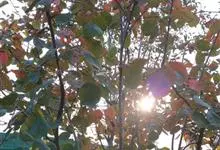 紫叶李是蔷薇科李属樱桃李的一个品种,别名红叶李、真红叶李等,落叶灌木或小乔木。其多分枝,枝条细长,暗灰色,小枝暗红色,无毛;冬芽卵圆形,紫红色;叶片椭圆形、卵形或倒卵形,极稀椭圆状披针形,…全部>>