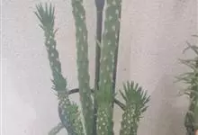 金刚纂,是大戟科大戟属的肉质灌木状小乔木。茎圆柱状,上部多分枝,叶片互生,少而稀疏,顶端钝圆,基部渐狭;花序二歧状腋生,苞叶膜质,总苞阔钟状,裂片半圆形,边缘具缘毛,雄花多枚;花期6-9月。…全部>>