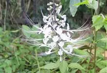 肾茶 Miq.)是唇形科,肾茶属多年生草本植物。别名猫须草。茎直立,高可达1.5米,四稜形,叶片卵形、菱状卵形或卵状长圆形,纸质,上面榄绿色,下面灰绿色,叶柄腹平背凸,被短柔毛。轮伞花序;苞片圆卵形,…全部>>