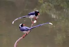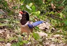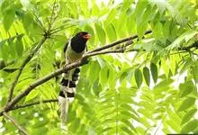 红嘴蓝鹊,别名山鹊、长尾鹊,是鸦科蓝鹊属的一种观赏性较强的大型鸣禽。该物种为体长54~65cm,头、颈、喉和胸黑色,头顶至后颈有一块白色至淡蓝白色或紫灰色块斑,其余上体紫蓝灰色或淡蓝灰褐色。尾长呈凸状,…全部>>
