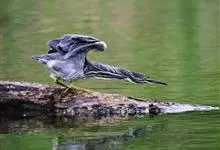 绿鹭:是鹳形目鹭科绿鹭属鸟类。体型小,头顶黑,枕冠亦黑色,上体蝉灰绿色,下体两侧银灰色;前额至后枕及冠羽墨绿色,眼后有一白斑,颊纹黑色;颚纹白色,后颈、颈侧和体侧烟灰色;背部披灰绿色矛状长羽,…全部>>