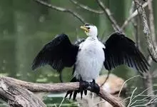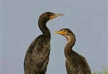 普通鸬鹚是属于鲣鸟目鸬鹚科鸬鹚属鸟类,又名水老鸦、鱼鹰、乌鬼、黑鱼郎等。体长720—900毫米,雌雄同型。通体黑色,有绿褐色金属光泽;喙厚重,喙基和喉囊橙黄色,脸颊及喉白色;夏羽颈及头饰具白色丝状羽,…全部>>