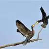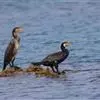 普通鸬鹚是属于鲣鸟目鸬鹚科鸬鹚属鸟类,又名水老鸦、鱼鹰、乌鬼、黑鱼郎等。体长720—900毫米,雌雄同型。通体黑色,有绿褐色金属光泽;喙厚重,喙基和喉囊橙黄色,脸颊及喉白色;夏羽颈及头饰具白色丝状羽,…全部>>