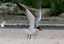 普通燕鸥是鸥科、燕鸥属下的一种迁徙夏候鸟。体型略小,约35厘米。头顶部黑色,背、肩和翅上覆羽鼠灰色或蓝灰色。颈、腰、尾上覆羽和尾白色。外侧尾羽延长,外侧黑色。下体白色,胸、腹沾葡萄灰褐色。…全部>>