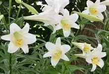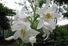 麝香百合:在中国台湾亦称铁炮百合。鳞茎球形或近球形,高2.5-5厘米;鳞片白色。茎高45-90厘米,绿色,基部为淡红色。叶散生,披针形或矩圆状披针形,两面无毛。花单生或2-3朵;花喇叭形,白色,筒外…全部>>