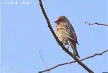 红腰朱雀:体长12-14厘米,小型鸟类。雄鸟前额和眉纹玫瑰粉红色,头顶和一宽的贯眼带深红褐色,背红棕褐色具暗褐色纵纹,腰玫瑰粉红色,两翅和尾暗褐色,羽缘色淡颊、头侧、颏、喉和其余下体玫瑰粉红色。雌鸟…全部>>