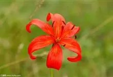 山丹是百合科百合属的多年生草本植物。鳞茎卵形或圆锥形,鳞片长圆形或长卵形,白色;叶散生茎中部,线形,边缘有乳头状突起;花单生或数朵成总状花序,花鲜红色,常无斑点,花被片反卷,…全部>>