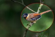 斑胸钩嘴鹛是雀形目、画眉科、钩嘴鹛属的鸟类。体型略大的钩嘴鹛。无浅色眉纹,脸颊棕色。甚似锈脸钩嘴鹛但胸部具浓密的黑色点斑或纵纹。栖息于低山地区及平原的林地灌丛间,在林间作短距离飞翔。…全部>>