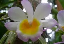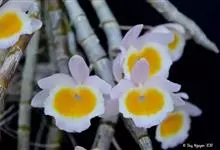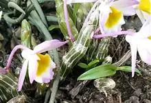 玫瑰石斛是兰科石斛属的多年生附生草本植物。茎斜下或下垂,青绿色,圆柱形,节间鞘具绿或白色相间的条纹;叶窄披针形;花序短,生于已落叶的老茎上部,花序梗长,萼片和花瓣白色,上部带淡紫色,干后蜡质状,…全部>>