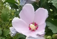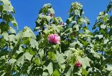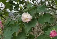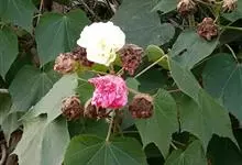 木芙蓉,锦葵科木槿属落叶灌木或小乔木。小枝上有细绒毛;叶片为卵状心形,托叶为披针形,常早落;花单生,花萼为钟形,花冠初为白色或淡红色,后逐渐变为深红色;果实为扁球形,有淡黄色的毛附着。花期8到10月。…全部>>