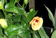 重瓣朱槿是锦葵科、木槿属常绿灌木植物;小枝疏被星状柔毛单叶互生,卵形或卵状披针形,基部圆形;叶柄长;托叶早落;花重瓣,较朱槿为大;花萼小,钟形,基部具有苞片多枚;花瓣多枚排列成彩球状,…全部>>