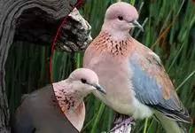 珠颈斑鸠,别名花斑鸠、珍珠鸠、花脖斑鸠、鸪鹪,是鸠鸽科副斑鸠属鸟类。体型中等,体长27~34cm,体重120~205g,雌鸟和雄鸟羽色相似,但雌鸟不如雄鸟羽色亮泽。珠颈斑鸠前额至头顶羽色稍淡,…全部>>